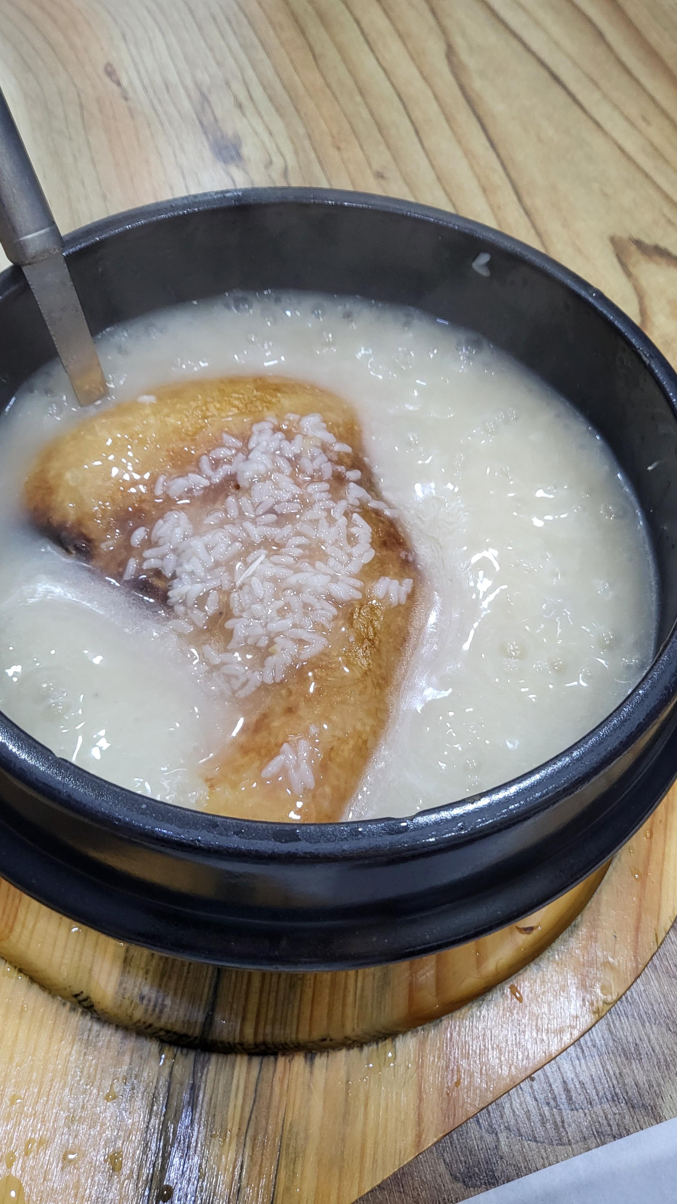구수한 누룽지 죽도 곁들여서 먹으니 아주 든든하다.