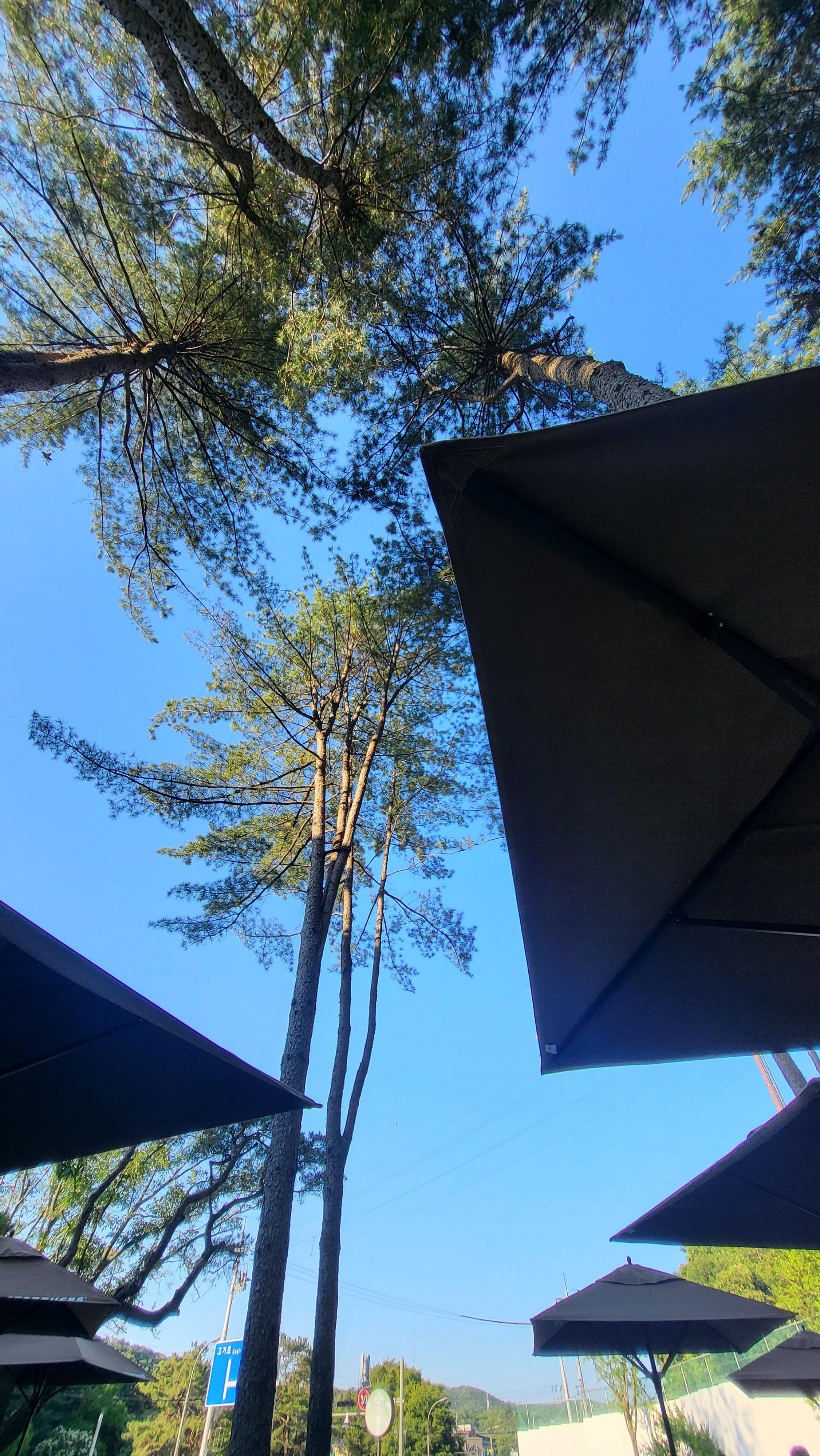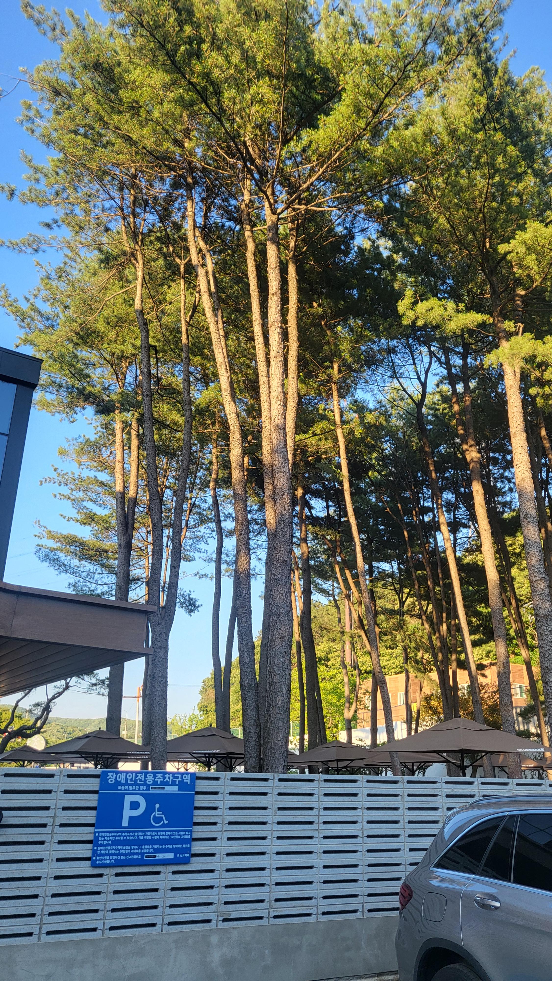 건물보다 더 높은 소나무는 확실히 이 매장의 상징이 될듯하다. 주변에 공사를 할 예정인지 공사장 펜스가 쳐져있었는데 그것만 없다면 정말 자연 속에 안겨있는 느낌이 날 것 같음.🤭🤭🤭