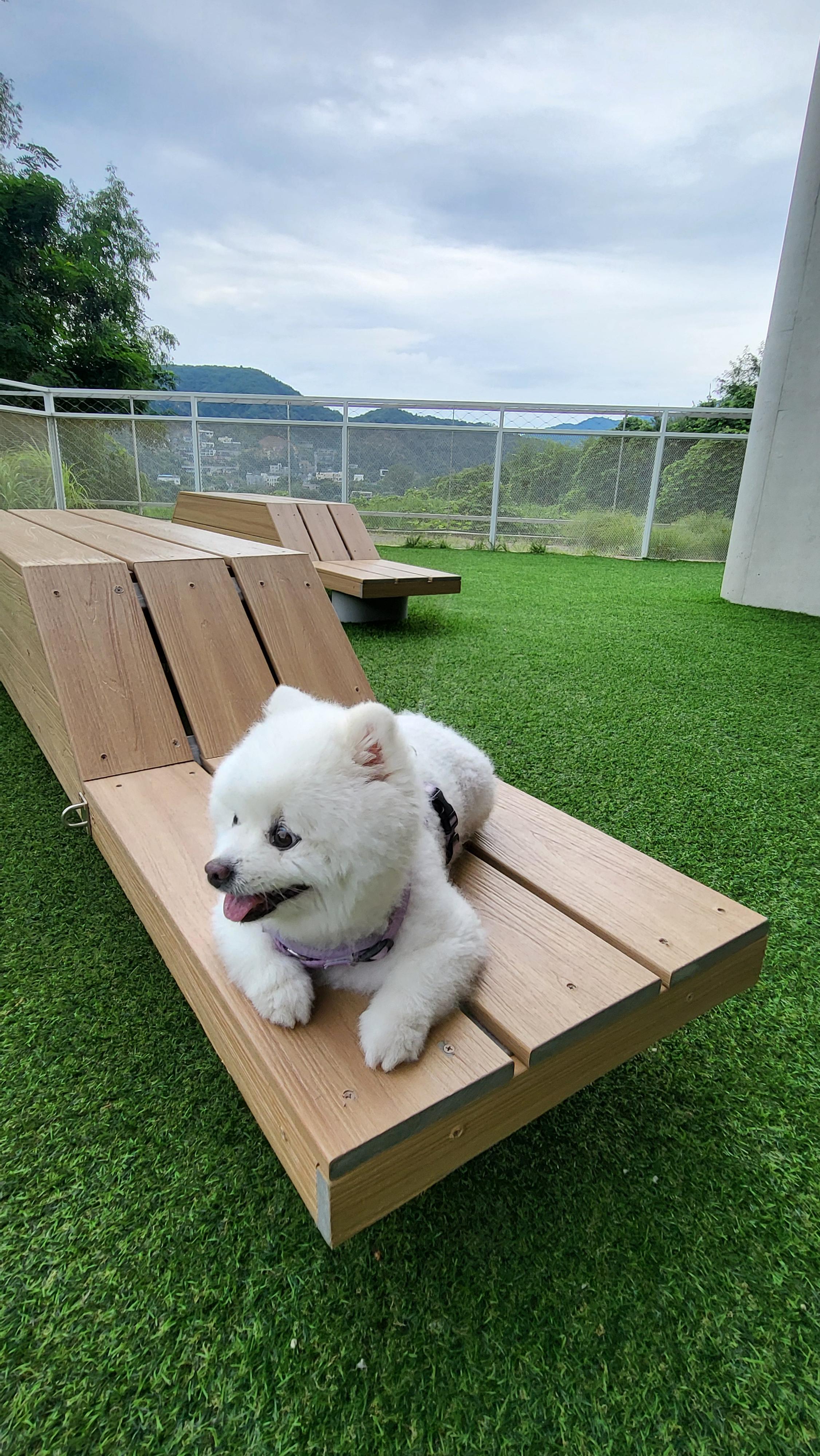 실내 펫존은 간단히 놀 수 있는 강아지 허들이나 다리근육 강화를 시켜주는 밸런스 볼(?)이 있고 포토존도 있어요~ 저희 집 강쥐는 어질리티 놀이는 하지도 않고 당당히 1등 자리에 앉아서 사진만 찍었고요. 사회성이 없는 강쥐라서 다른 강아지들과 놀지도 않았답니다 ㅋㅋ 잘 노는 강아지라면 뛰어놀 수 있는 공간이 충분해서 자주 데려가고 싶을 것 같아요~