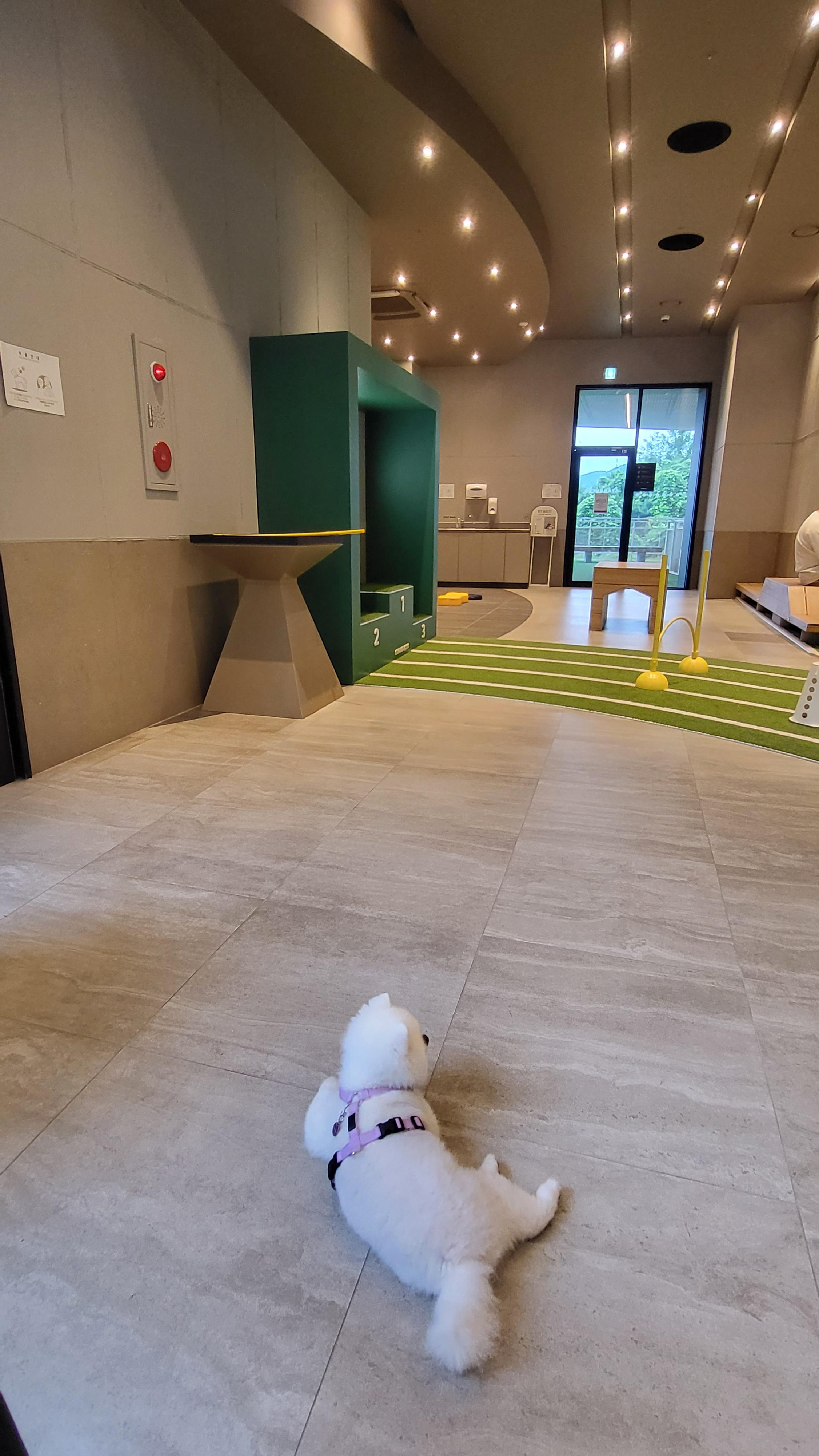 그게 좀 아쉽더라고요... 그래도 1층 모든 공간에 배변봉투도 구비되어 있고 꽤 넓은 공간을 펫존으로 할애를 해서 답답하지는 않았고 실내/실외 나눠져 있으니 필요에 따라 선택할 수 있어서 그 점은 좋았답니다.