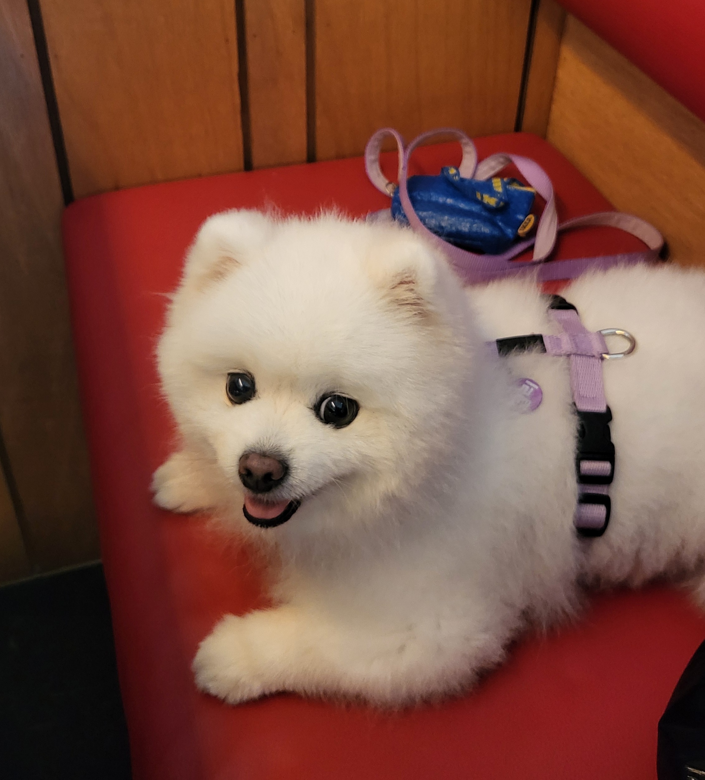 강아지와 앉기 편하게 오른쪽 소파자리에 앉게 되었다.